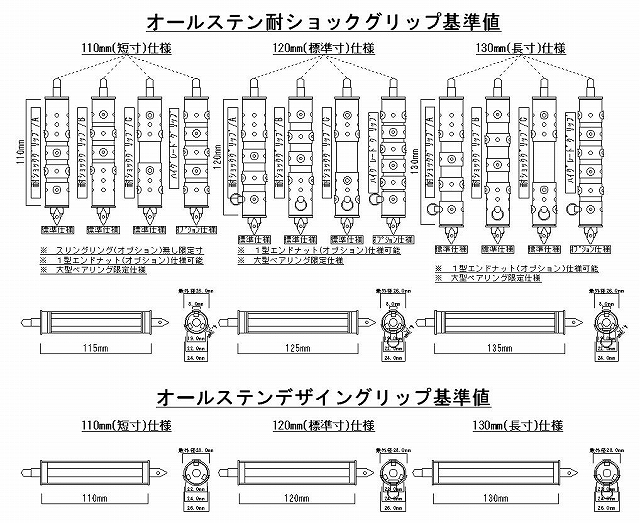 ○ 2018/1よりオールステンデザイングリップが新耐ショック仕様となりました。(グリップ内部構造が耐ショックグリップと同一耐ショック構造になりました。)