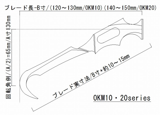 (ブレード長-B寸150mm~/実寸法+10mm~15mm)