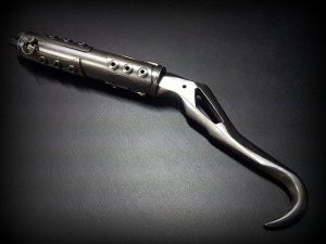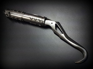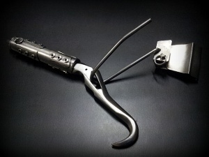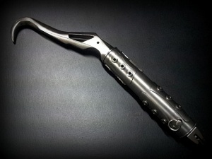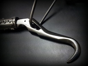 ※ 荒鉄ハッカーは、特殊形状・特殊重量バランスの為、一般市販ハッカー差し等ご利用できません。できるだけ専用ハッカーシース・ハッカーハンガーのご使用をお勧めいたします。
