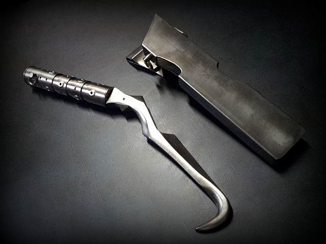 (新製品プロトモデル)(オールステンレスベアリングハッカー)全長/217mm ブレード長/95mm 回転角/45mm グリップ/100mmグリップ 3型エンド TM8SL(ステンレスシース)